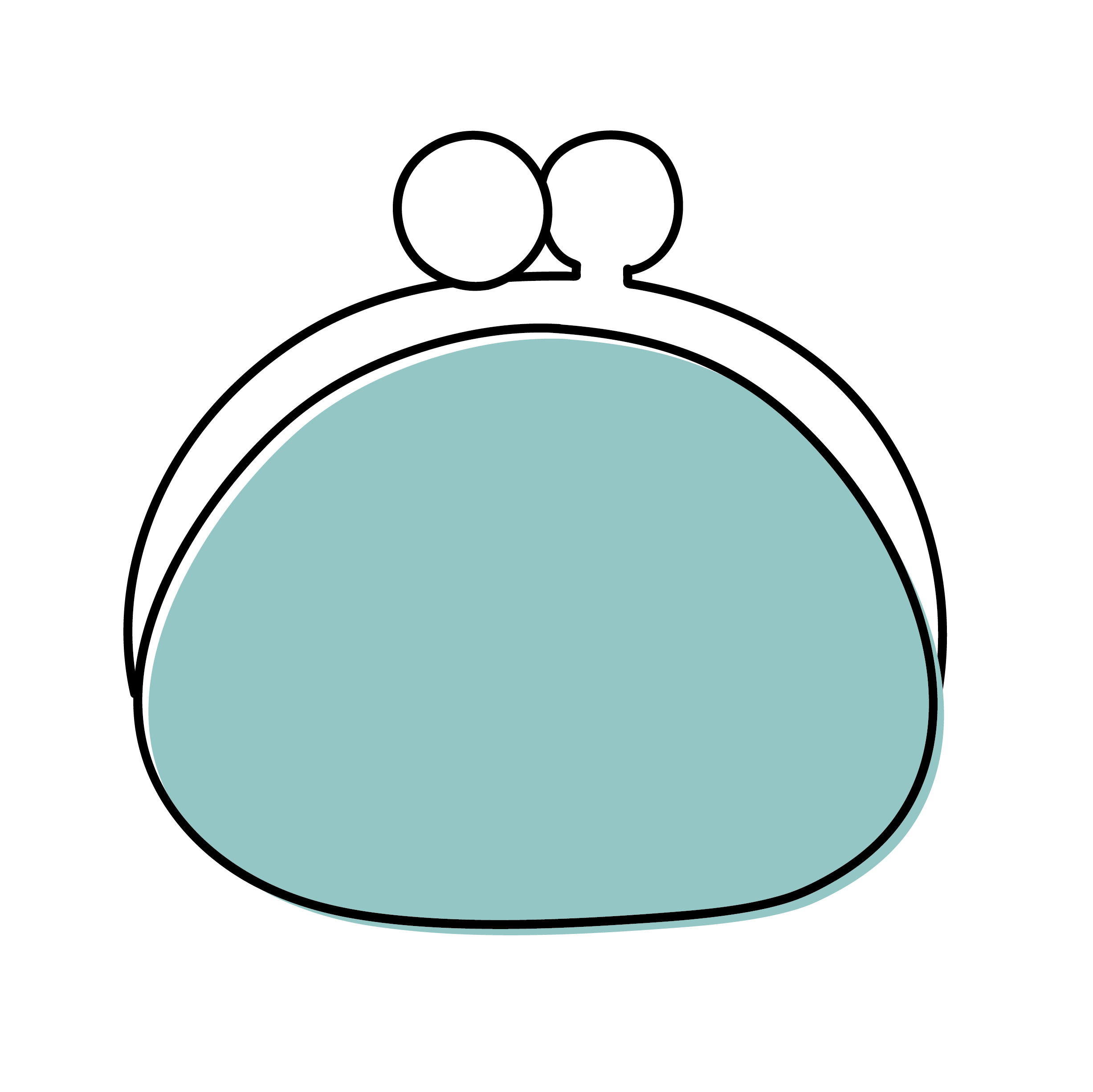 お金を入れる部分ががま口になっている財布のイラストです。「お金」や「貯金」などを表現するときに使うと便利です。